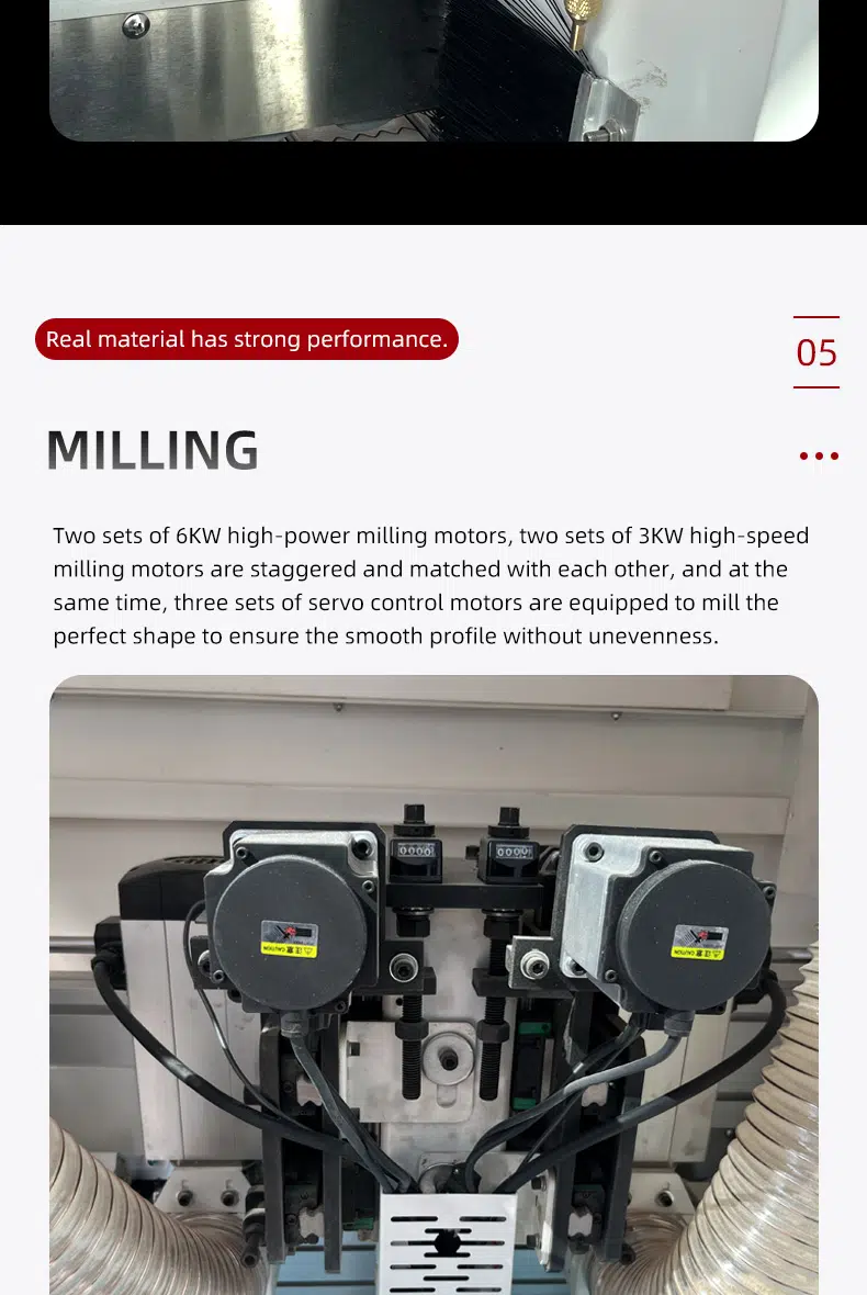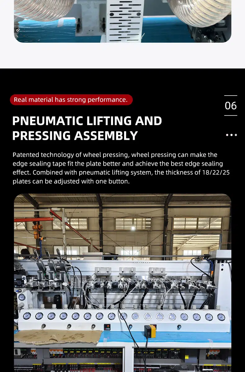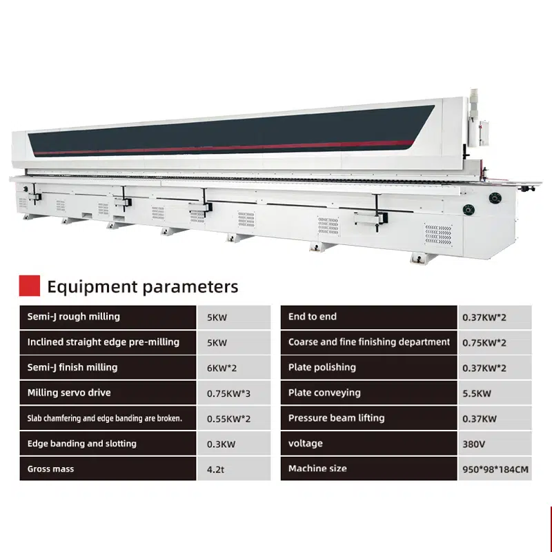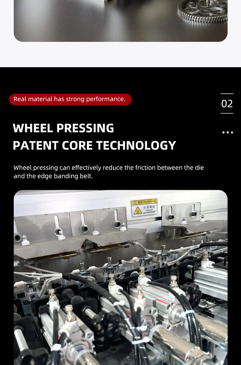 DW985 Soft forming edge banding machine is a fully automaticsemi-automatic edge banding machine without handle.the wheeled profiling design system supports remote upgrading of more shapesand the touch screen operation key switches different shapes, and the maximumprocessing speed can reach 8-12m/min.all parts are made of high-end brands and well assembled. ensure that theequipment runs stably and can adapt to different high and low temperatureenvironments. the equipment has the characteristics of high stability, accurateprocessing, high efficiency and simple operation.